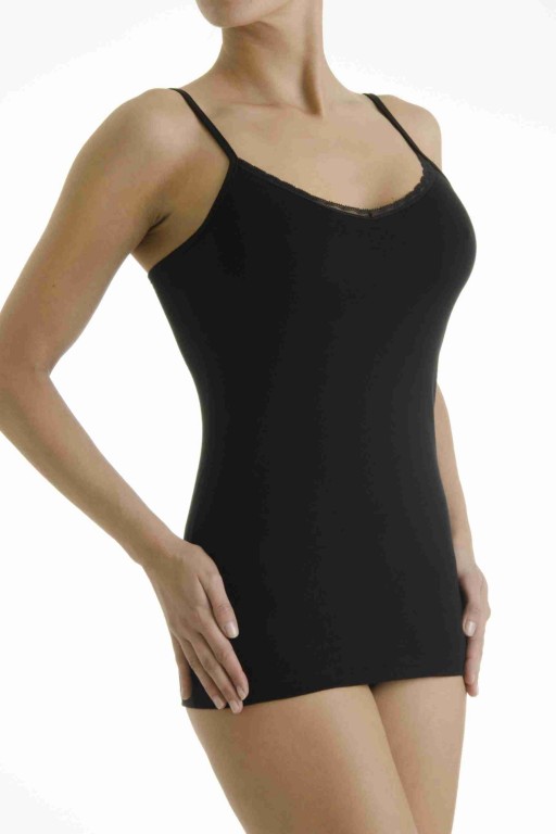 Velmi pěkná košilka Pleas, hladká, velmi jemný žebrovaný úplet, tenká špagetová ramínka, která je možno upravit. Košilka je bezešvá, obepíná tělo a neznačí se ani pod přiléhavým oblečením, spodní lem je pevný. Košilka je zdobená luxusní krajkou. Košilka se vyrábí ve velikosti 38 až 46, materiálové složení: 95% Bavlna a 5% Elastan.