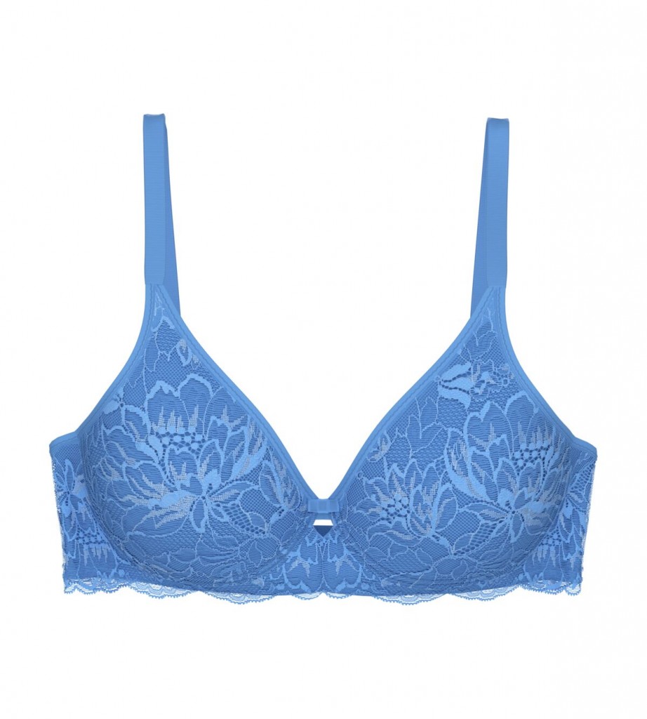 Velmi pěkná podprsenka z kolekce Triumph s kosticí a bez výztuže. Bezešvá elastická krajka s květinovým motivem, která se neznačí pod oblečením. Podprsenka krásně tvaruje a poskytuje dostatečnou oporu i velkému poprsí. Podprsenka se vyrábí v košíčku C až G v obvodech 75 až 85, materiálové složení: 74% Polyamid a 26% Elastan.