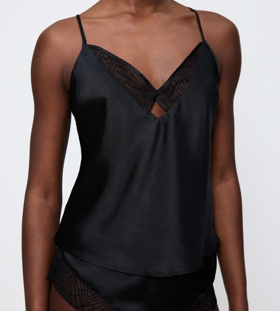Krásná sexy dámské pyžamko Triumph z vysoce kvalitní hedvábně hebké tkaniny, která dodá vaší pokožce příjemný a lehce chladivý pocit. Ramínka jsou úzká a je možné upravit jejich délku. Košilka je doplněná o krátké kraťásky se zdobenou nohavičkou. Pyžamko se nabízí ve velikostech 36 až 42, materiálové složení: 100% recyklovaný Polyester.