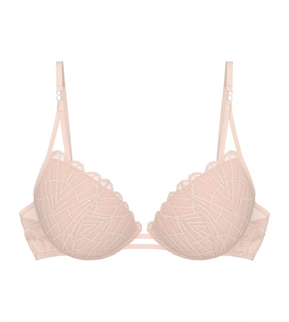 Velmi krásná a výborně padnoucí vyztužená podprsenka Triumph s push-up efektem a nízkým středem. Podprsenka je zdobená luxusní krajkou a vyrábí se ve velikostech košíčků A až C v obvodech pod prsy 75 až 85, materiálové složení: 49% Polyester, 41% Polyamid a 10% Elastan.