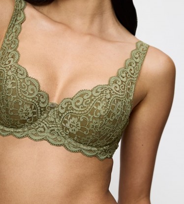Krásná a velmi dobře padnoucí podprsenka Triumph s kosticí. Balkonetový střih s částečně jemně vyztuženými košíčky. Jedná se o velice oblíbený střih podprsenky, která je nejen pěkná, ale také pohodlná. Podprsenka je vyrobená z elastické květinové krajky a je vhodná i pro plnější poprsí, hodí se i do hlubších dekoltů. Vyrábí se v košíčku A až E v obvodech pod prsy 75, 80, 85, 90 materiálové složení: 51% Polyamid, 22% Elastan, 16% Bavlna a 11% Polyester.