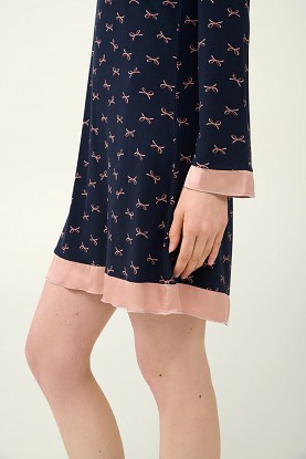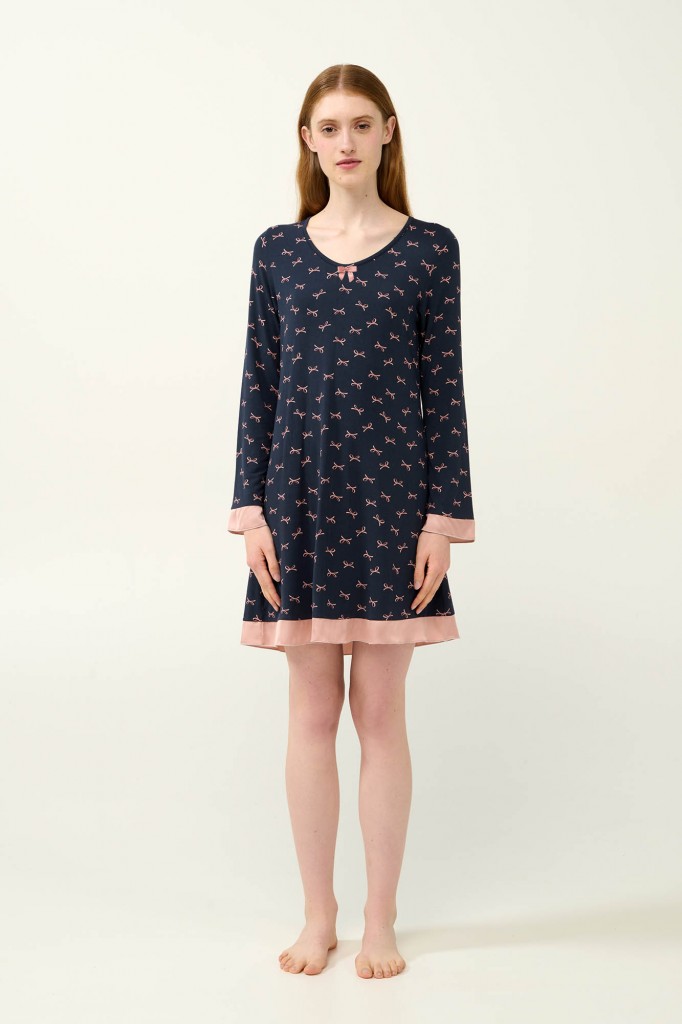 Krásná a elegantní dámská noční košilka Triumph empírového střihu s dlouhým splývavým rukávkem. Košilka je zdobená mašličkami a decentními lehkými volánky v kontrastním odstínu a je vyrobená z vysoce kvalitního jemného a měkkého úpletu od značky Lenzing, který je prodyšný a velmi příjemný k pokožce. Košilku nabízíme ve velikostech S, M, L, XL, materiálové složení: 93% Lenzing Tencel Modal Micro a 7% Elastan.