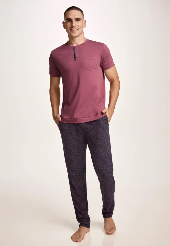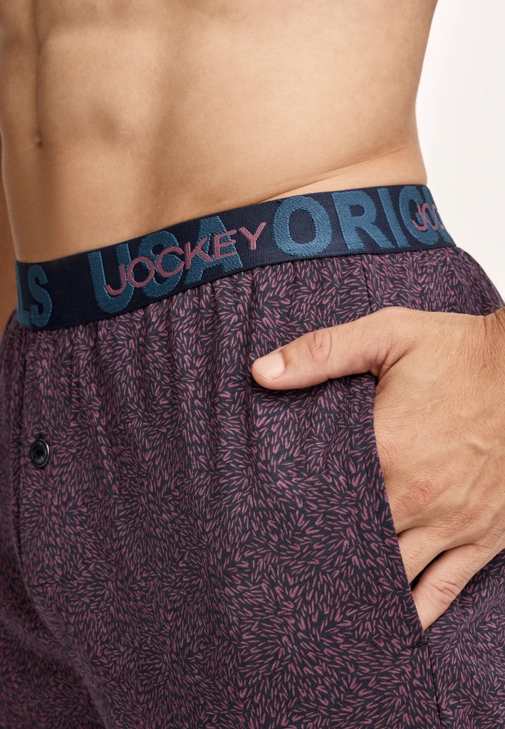 Velmi pěkné samostatné pánské pyžamové kalhoty Jockey s dlouhými nohavicemi a dvěma bočními kapsami. Módně vzorované kalhoty jsou v pase do pohodlné širší gumy, jsou vyrobené z mimořádně příjemného přírodního úpletu. Kalhoty je možné nosit po doma a nebo využít jako pyžamové kalhoty. Kalhoty se vyrábí ve velikostech 50, 52, 54, 56 (M, L, XL, 2XL), materiálové složení: 50% Bavlna a 50% Modal.