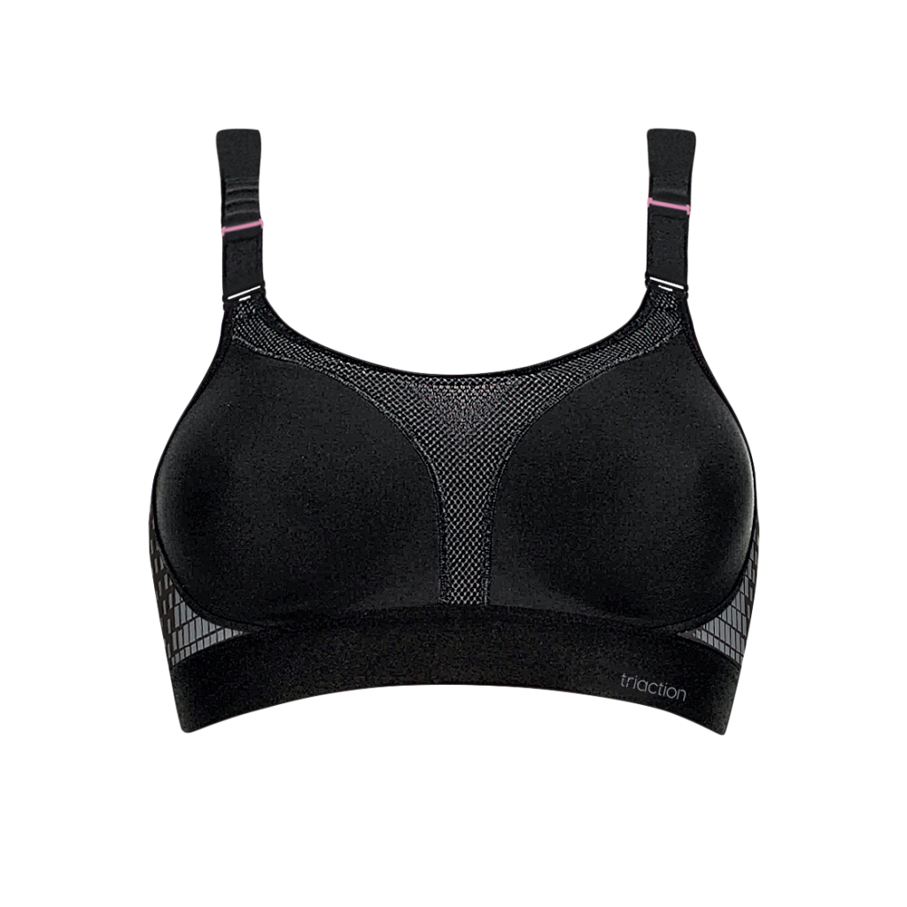 Sportovní podprsenka Triumph Triaction vhodná pro extrémní zátěžové aktivity, ideální top do fitka. Nastavitelná délka ramínek jak na zádech, tak i ve předu , vypodložená ramínka je možné přepnout na zádech do kříže. Podprsenka má na zádech zapínání. Pečlivě rozmístěné funkční zóny poskytují maximální svobodu pohybu a zároveň příjemný svěží pocit. Extrémně lehký, jemný rychle schnoucí materiál, perfektní regulace teploty, vysoká prodyšnost, maximální podpora proti nárazům i pro veké poprsí (podpora o 77% větší oproti běžným typům podprsenek - testováno na University of Portsmouth). Antibakteriální, měkká vlákna testovaná pro citlivou pokožku. Háčky neobsahují nikl. Vyrábí se ve velikostech košíčků B v obvodech 75 až 85, v košíčcích C až G v obvodech 70 až 85, materiálové složení: 79% Polyamid, 21% Elastan.