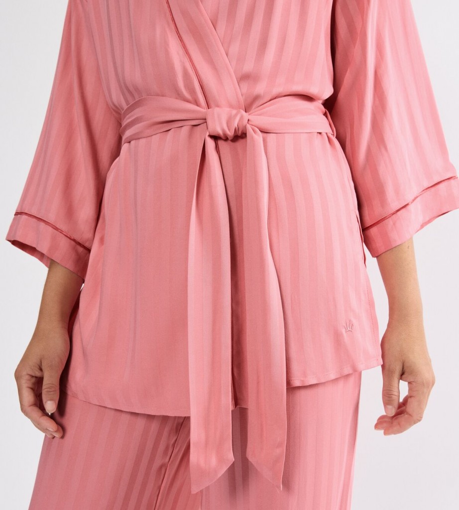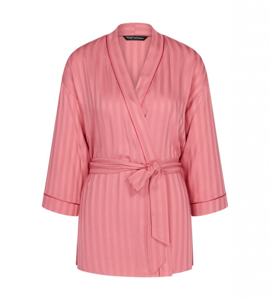 Velmi pěkný a elegantní krátký župánek Triumph s 3/4 déllkou rukávů a v pase na pásek. Kabátek je vyrobený z velmi kvalitní lesklé žakárové tkaniny, díky tomu je velmi lehký, měkký a příjemný na nošení. Župánek je možný kombinovat s dlouhými či krátkými kalhotami ze stejné kolekce a vyrábí se ve velikostech 36 až 42, materiálové složení: 100% Viskóza.
