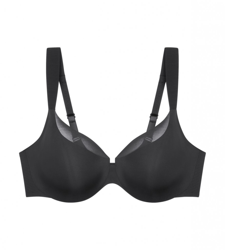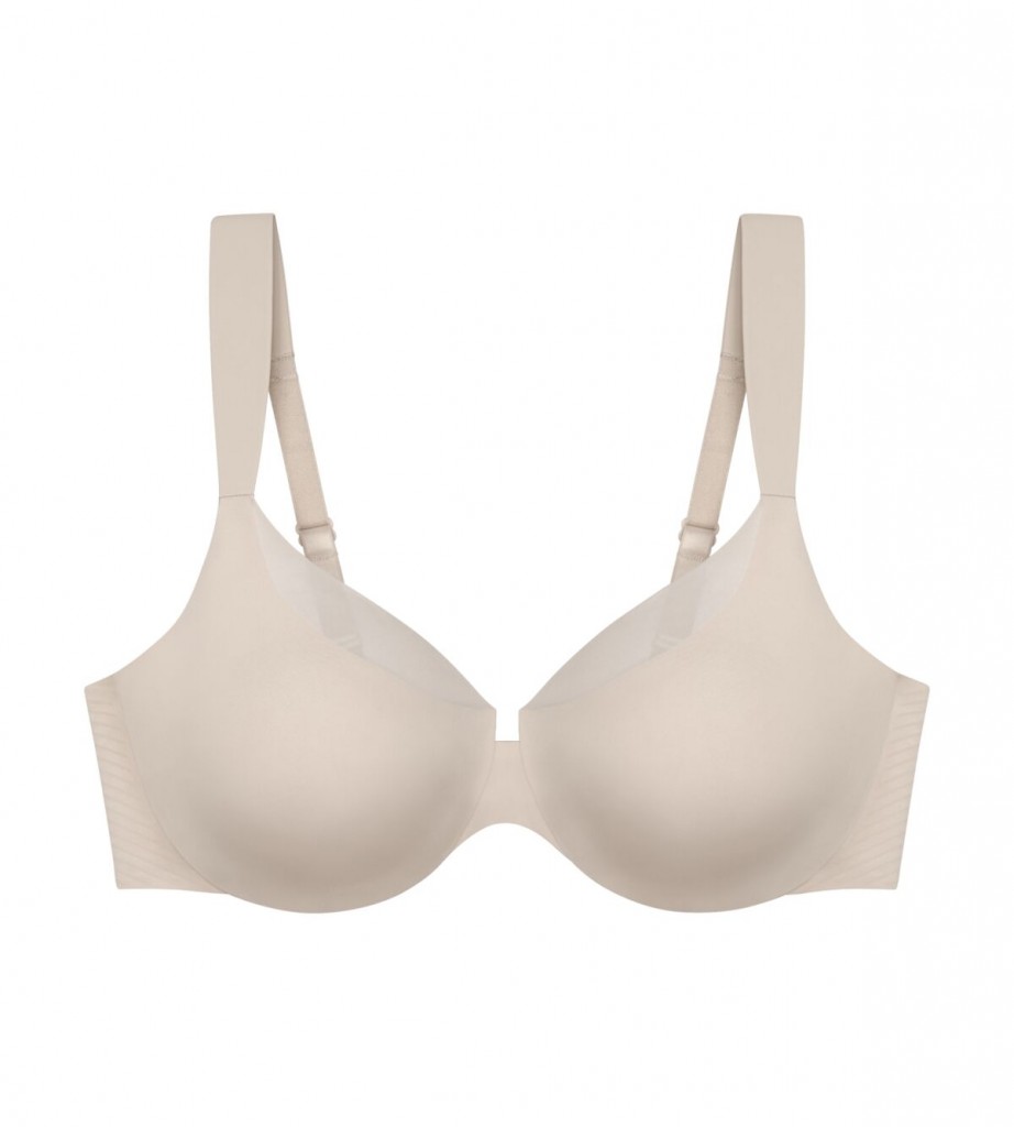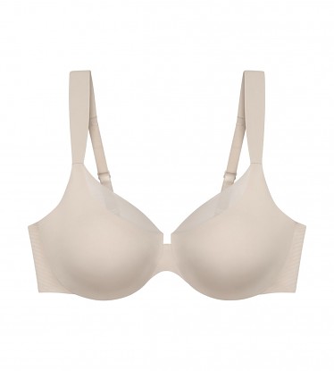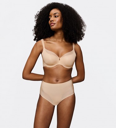 Nová velmi pohodlná zmenšující podprsenka Triumph se speciální komfortní kosticí pro maximální pohodlí. Hladké měkké košíčky jsou bezešvé a zcela bez výztuže, ramínka jsou v náramenici rozšířená. Podprsenka je vyrobená z velmi lehkého a vysoce prodyšného materiálu, je navržena tak, aby byla pod oblečením zcela neviditelná. Díky svému speciálnímu střihu dokáže opticky zmenšit poprsí až o jednu velikost. Podprsenka se vyrábí ve velikosti košíčků C až G v obvodech pod prsy 70 až 95. Materiálové složení: 81% Polyamid a 19% Elastan.