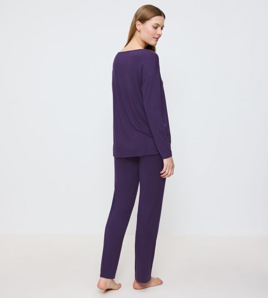 Krásné a elegantní dámské pyžamko Triumph s krajkovými vsadkami na bocích halenky. Pyžamko je vyrobené z jemného, měkkého úpletu, který je vysoce prodyšný a velmi příjemný k pokožce. Pyžamko se vyrábí ve velikostech 36 až 44, materiálové složení: 94% Lenzing Tencel Modal a 6% Elastan.