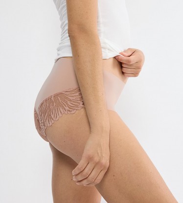 Elegantní kalhotky Triumph klasického střihu maxi středně vysoké. Kalhotky mají hladký přední díl a zadní díl je zdoben jemnou plochou krajkou. Zakončení kalhotek kolem nohaviček a na zadním díle je zpracované tak, aby se kalhotky neznačily ani pod přiléhavým oblečením. Bavlněná vsadka v rozkroku. Kalhotky se vyrábí ve velikostech S až XL, materiálové složení: 61% Polyamid a 39% Elastan.