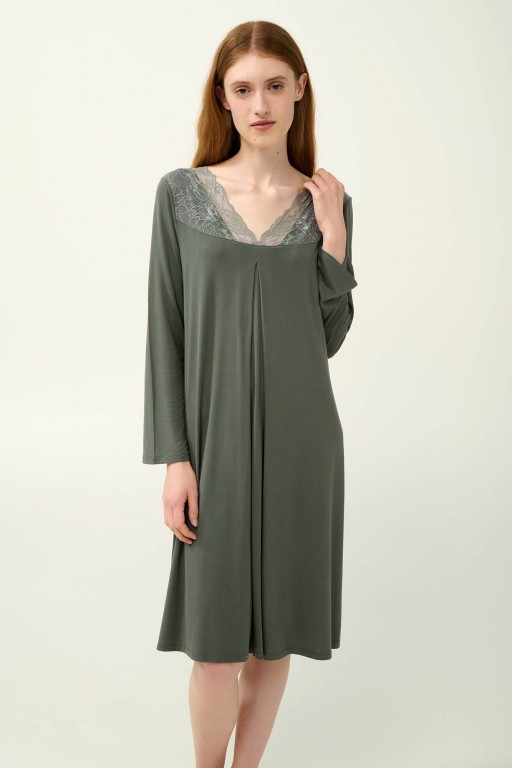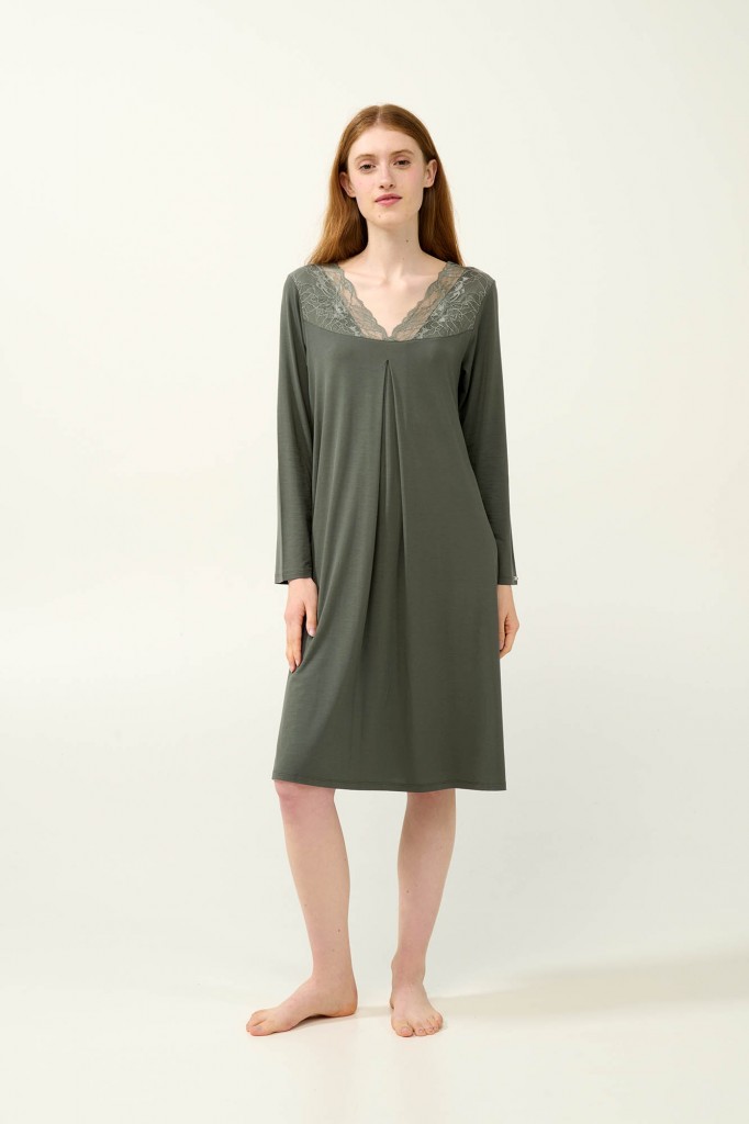 Krásná a elegantní dámská noční košilka Vamp empírového střihu s dlouhými rukávy, zdobená krajkou ve výstřihu. Košilka je vyrobená z vysoce kvalitního jemného a měkkého úpletu od značky Lenzing, který je prodyšný a velmi příjemný k pokožce. Košilku nabízíme ve velikostech S až 2XL, materiálové složení: 93% Lenzing Tencel Modal Micro a 7% Elastan.