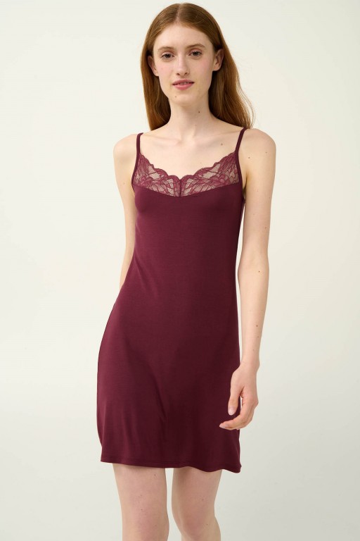 Krásná a elegantní dámská noční košilka Vamp empírového střihu na ramínka zdobená krajkou. Košilka je vyrobená z vysoce kvalitního jemného a měkkého úpletu od značky Lenzing, který je prodyšný a velmi příjemný k pokožce. Košilku nabízíme ve velikostech S, M, L, materiálové složení: 93% Lenzing Tencel Modal Micro a 7% Elastan.