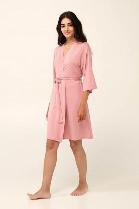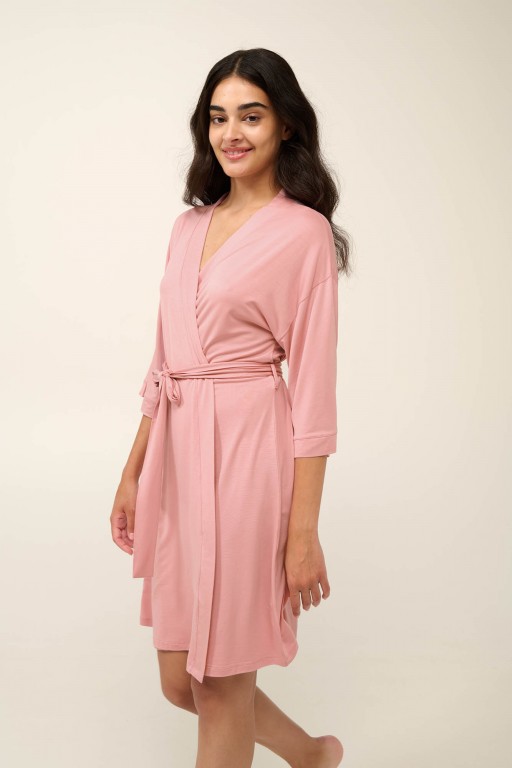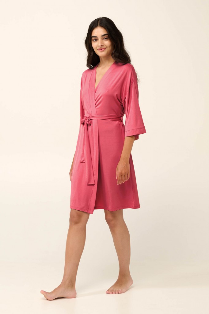 Krásný a elegantní lehoučký dámský župánek Vamp v délce ke kolenům a s 3/4 délkou rukávků. Župan je vyrobený z vysoce kvalitního jemného a měkkého úpletu od značky Lenzing, který je prodyšný a velmi příjemný k pokožce, v pase má pásek na převázání. Župánek nabízíme ve velikostech S, M, L, materiálové složení: 93% Lenzing Tencel Modal Micro a 7% Elastan.