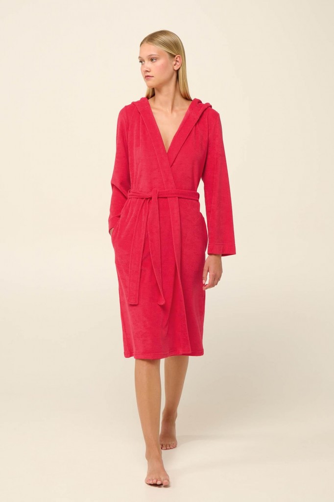 Velmi pěkný a praktický středně dlouhý dámský župan VAMP s kapucí a se dvěma bočními kapsami, v pase je pásek. Župánek je vyrobený z lehkého, měkkého a prodyšného froté s vysokým podílem bavlny, nabízí tak pohodlí a sportovně elegantní vzhled, je vhodný spíše na letní dny, na lenošení doma, na pláži nebo u bazénu, je skladný a proto je vhodný i na cestování. Nabízíme jej ve velikostech S, M, L, XL, materiálové složení: 80% Bavlna a 20% Polyester.