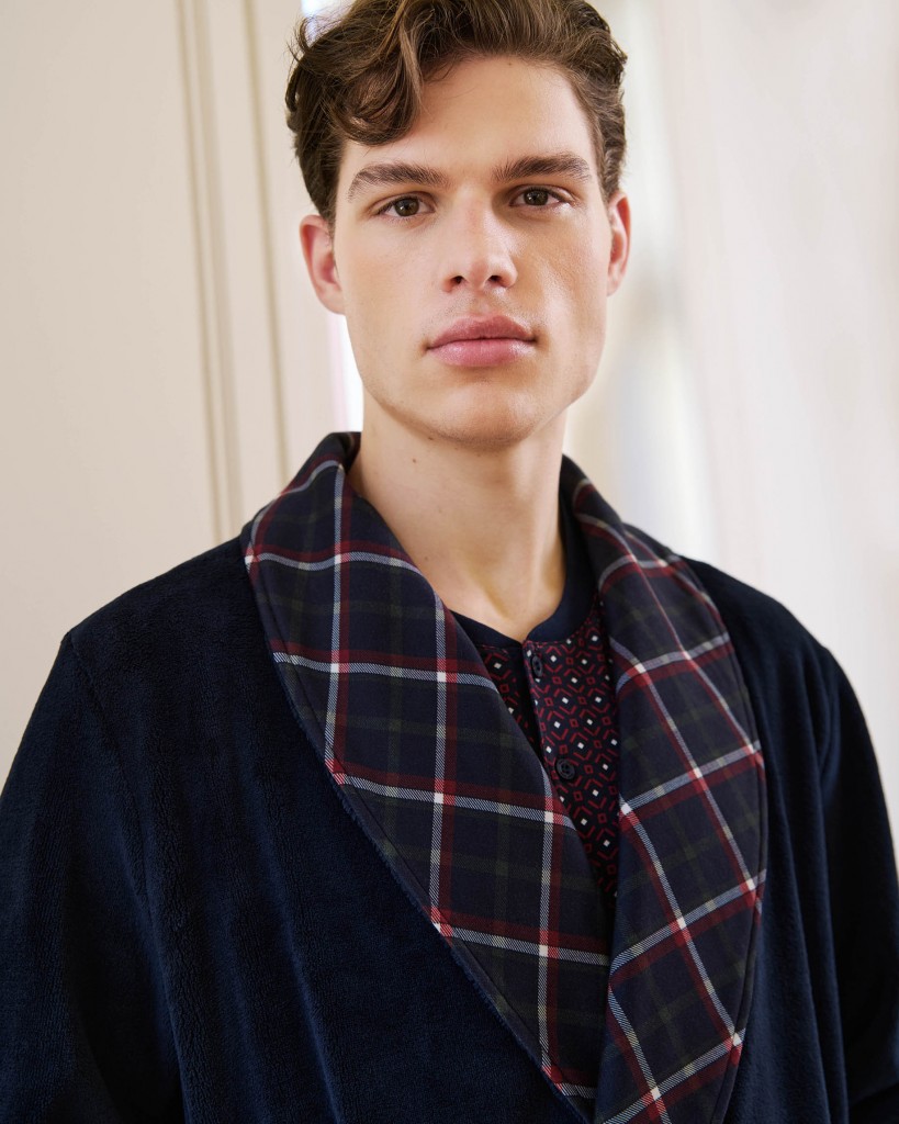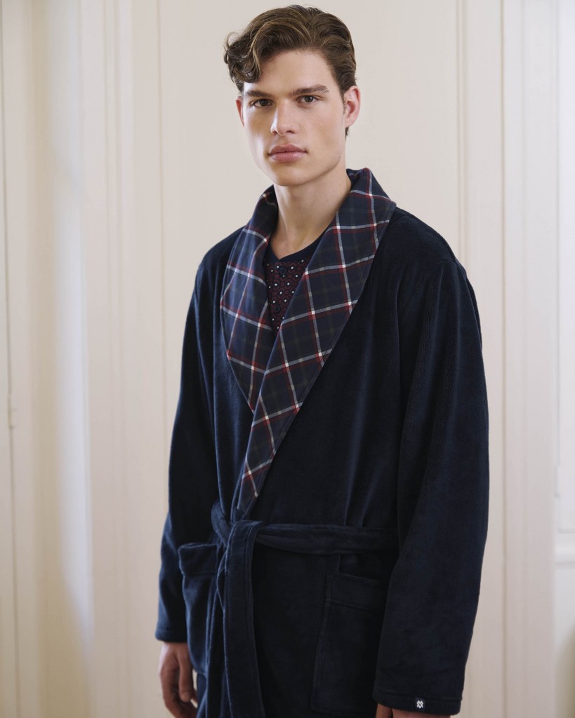 Luxusní pánský župan Vamp s dlouhým rukávem v délce do půli stehen, je vyrobený z jemného heboučkého a lehkého materiálu, který je prodyšný, hřejivý a velmi příjemný k pokožce. Župan má široké klopy zdobené kontrastní kostkou, která dodává županu nádech sportovní elegance, dvě praktické kapsy a pásek v pase. Vyrábí se ve velikostech M, L, XL a XXL, materiálové složení: 100% Polyester Coral Fleece.